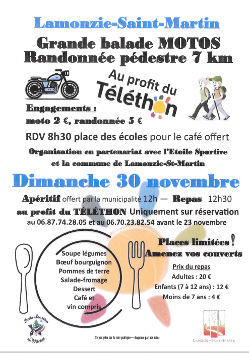 Edition 2025 organisée par la Commune, l'Etoile Sportive au profit du Téléthon