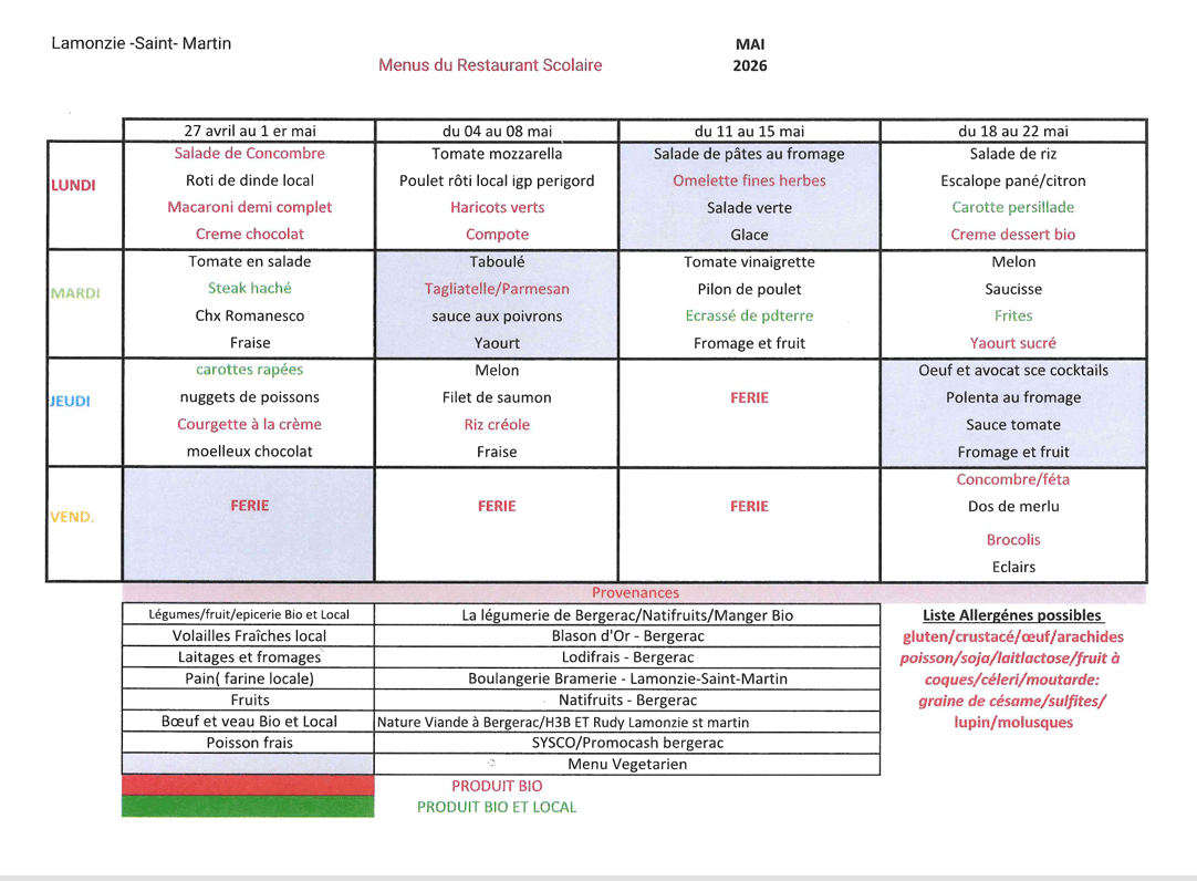 Menu mai 2026